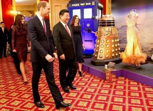 习大大身后的就是剧中的Tardis和著名反派种族Dalek
