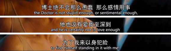 在与Cyberman对战的时候,为了保护人类和宇宙的秩序,两人被分割在两个平行世界,而10th Doctor为了再见Rose一面,甚至燃尽了一颗超新星,只为跟她说一句“I love U”,却没有来得及说出口。