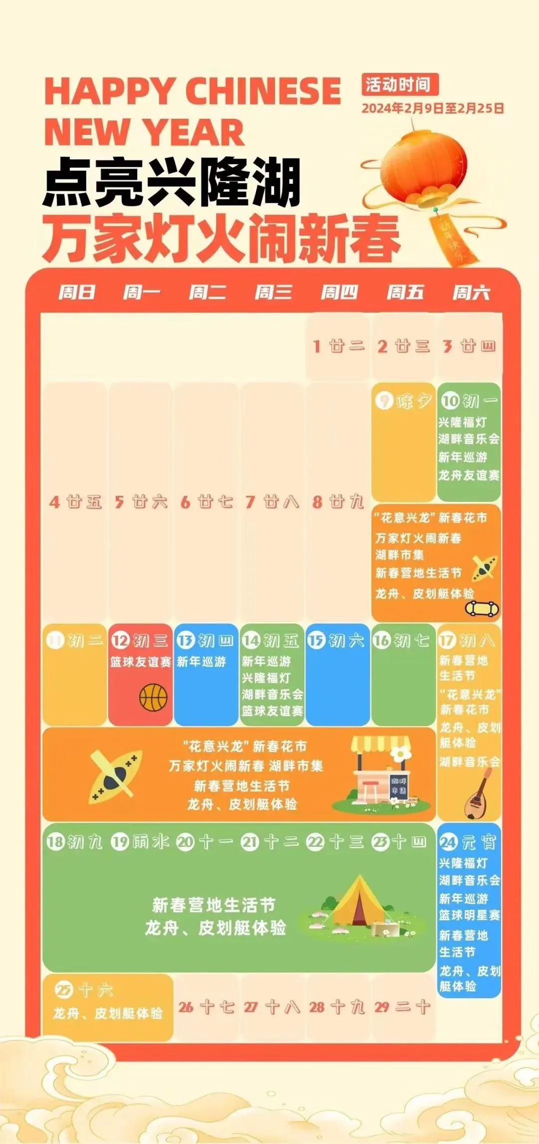 2月10日-2月25日,来兴隆湖畔一起秀动新春、体验烟火兴隆,再用一场运动开启新年新生活。