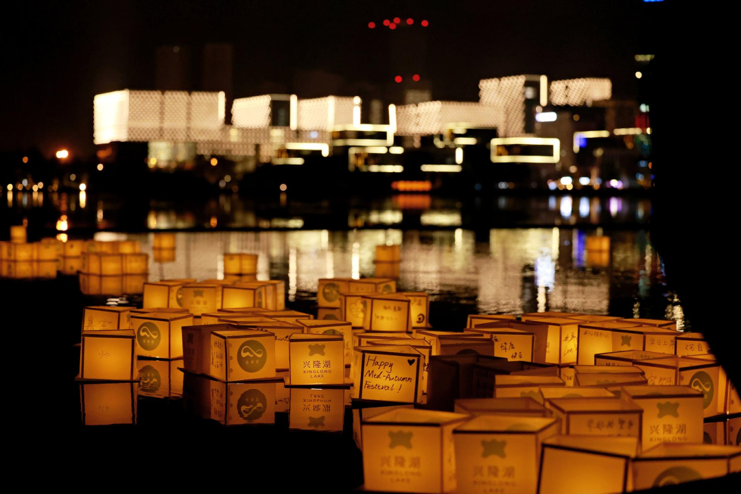 径直穿过龙桥,来到湖畔,点一盏福灯,满载福泽,带着美好心愿,祈愿万事兴隆,让熠熠星光如游龙启航,在兴隆湖面闪烁荡漾。