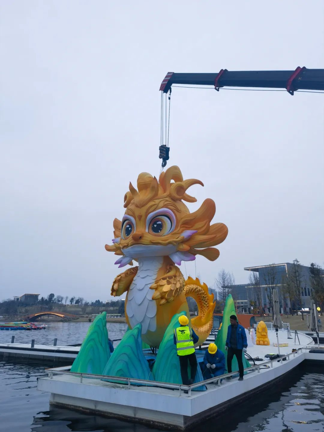 可爱又迷人的龘龘龙,乖乖地伫立在兴隆湖游客中心码头,等着大家来摸福接运。