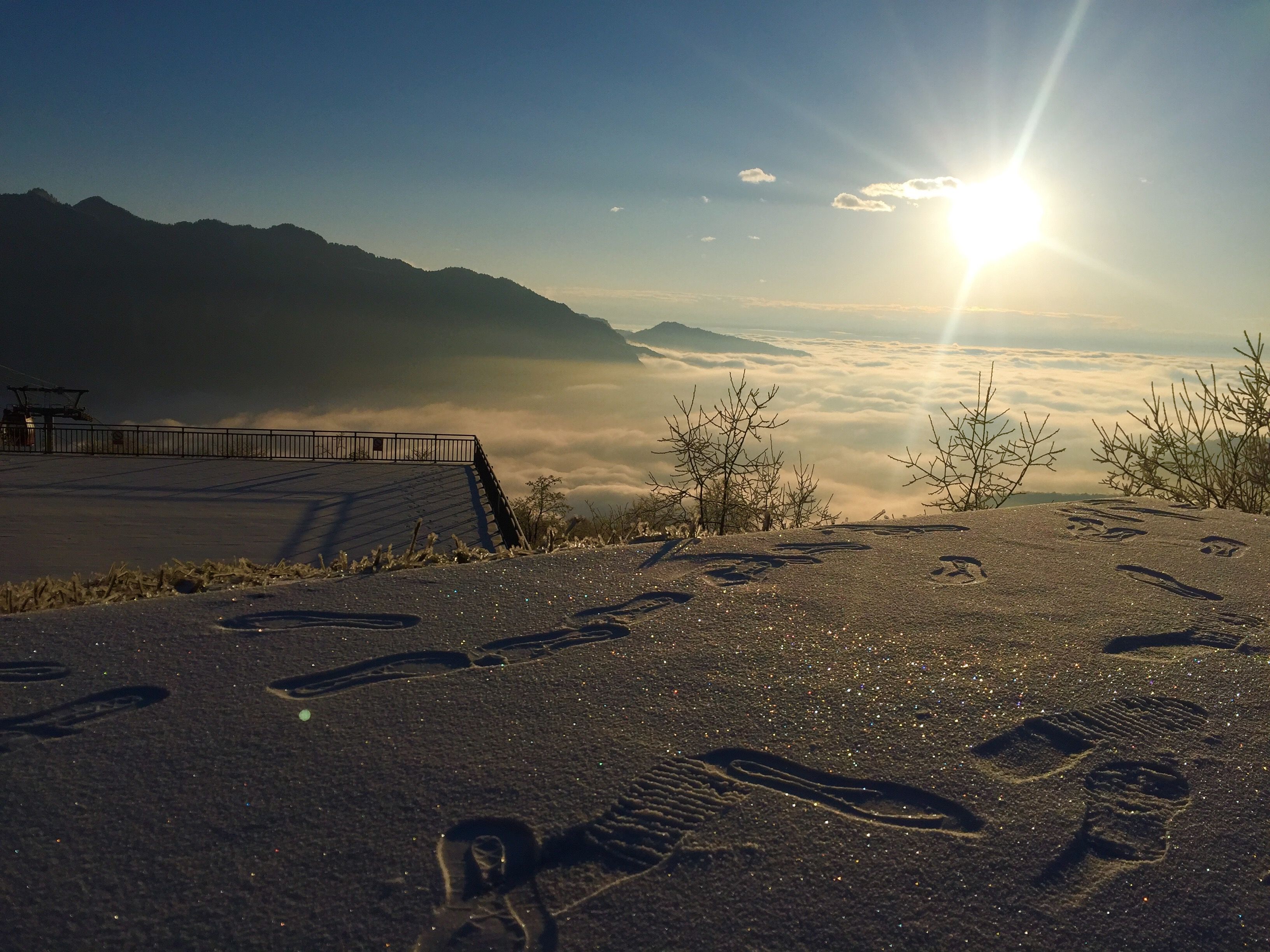 乘坐全程2500米、落差1000米的缆车一览众山,登3200米的日月坪赏云海壮丽、守日出云开、或是在阴阳界漫步云端体验童话世界的神秘......在滑雪玩雪之外,徒步的“冬运”方式更能收获美景。