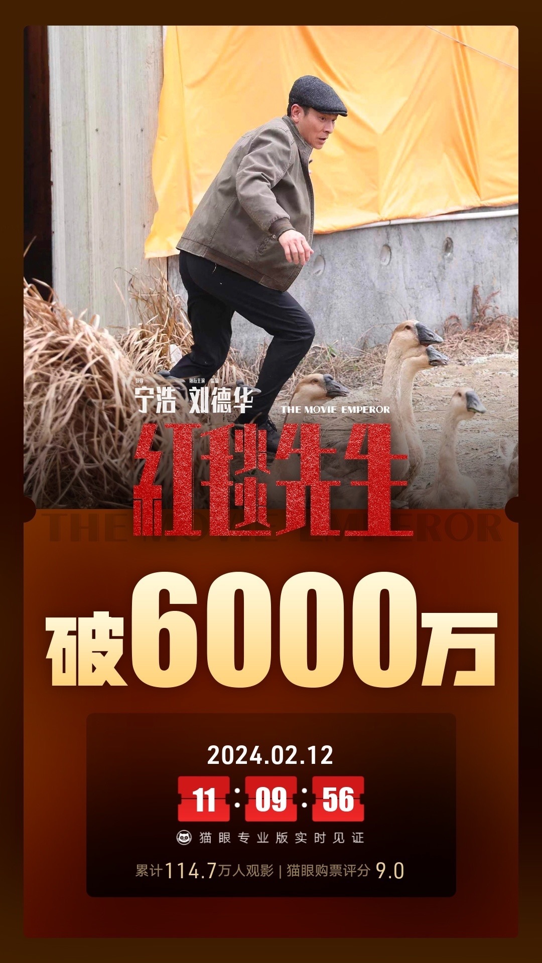 据猫眼专业版数据,电影《红毯先生》上映3天,总票房破6000万。