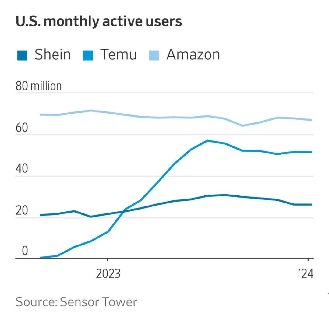 同时别忘了,还有在供应链、人才挖角和司法诉讼与Temu针锋相对的Shein。