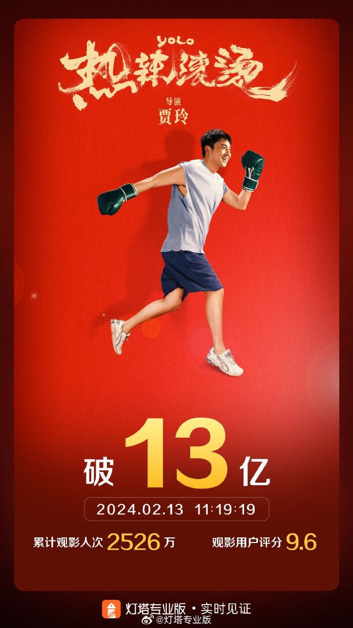 据灯塔专业版实时数据,截至2月13日11时19分,影片《热辣滚烫》票房突破13亿元。