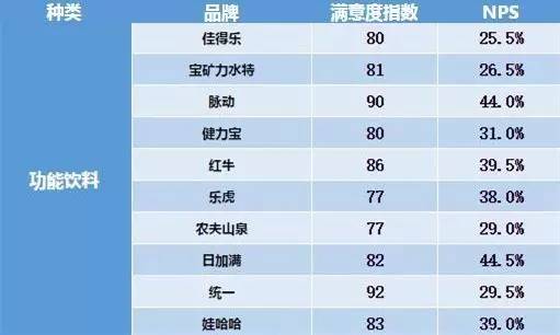 那么,消费者最喜欢哪些功能饮料呢?从公布的数据来看,综合满意度较高的10个品牌依次为统一、脉动、红牛、娃哈哈、日加满、宝矿力水特、佳得乐、健力宝、乐虎和农夫山泉。