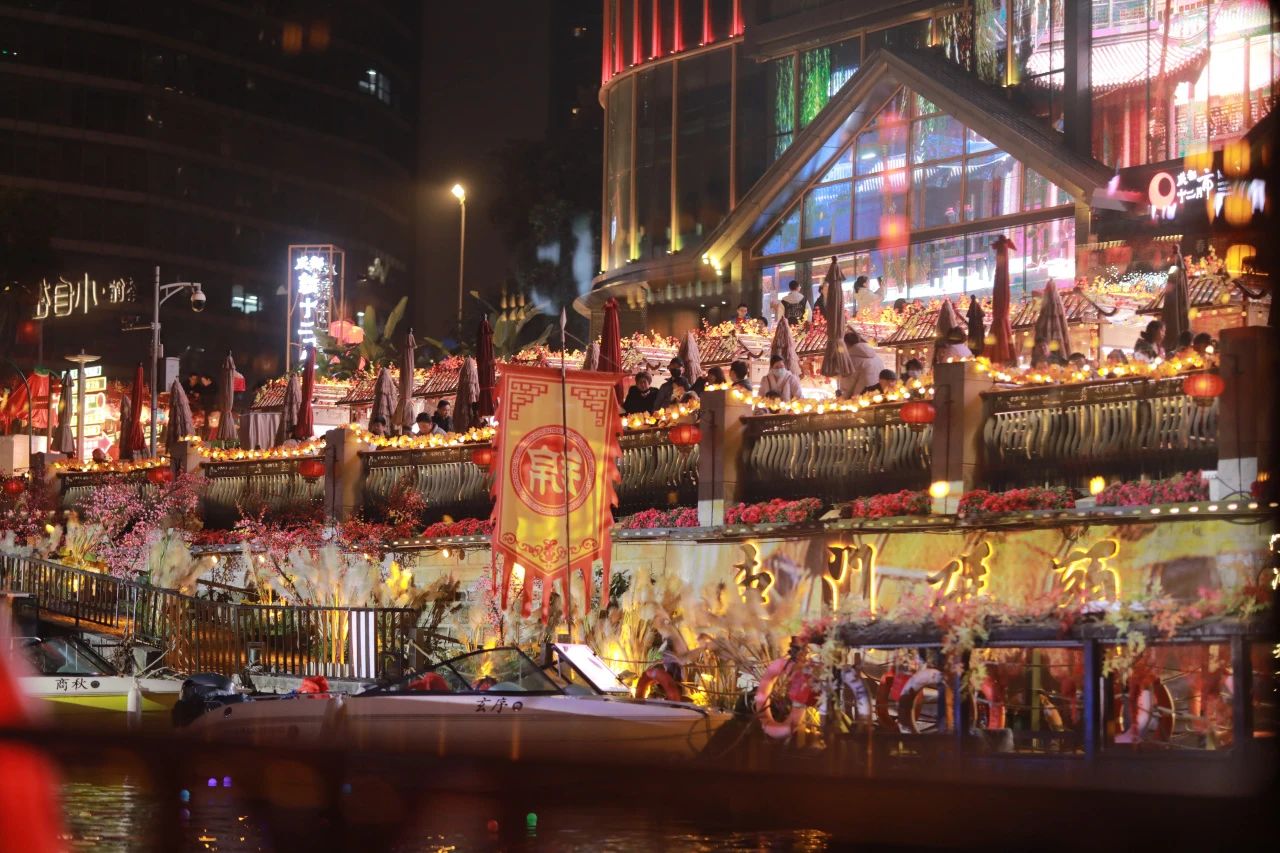 而近年来成为“成都文旅新名片”的夜游锦江,不仅在春节期间上新了古蜀流光船闸和新蜀味锦江主题火锅船,更准备了特别惊喜——“龙九子”“五财神”等真人NPC邀你一起打卡寻真龙、探年俗,赏成都的万家灯火;在锦江边还可以亲自为城市涂鸦,共同建设成都的美好新气象。