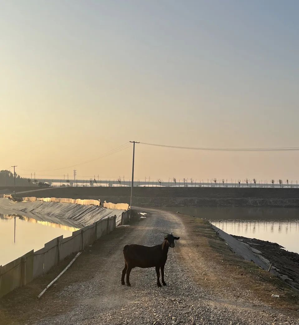 堤埂上,一只在寻找自己孩子的母羊。图源:时代财经/摄