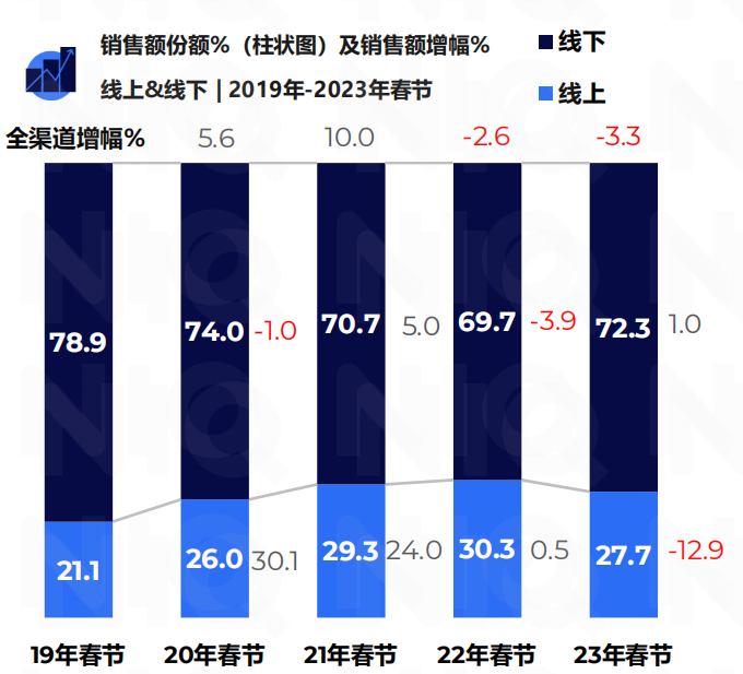 如赵刚所言,整体来看,线下渠道一直占据春节期间消费的七成左右。