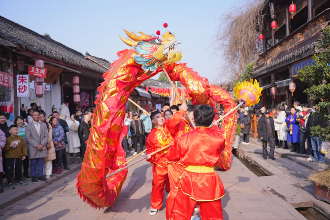 民俗文艺表演、客家龙狮拜年、孔明开街、客家响簧表演……浓郁的客家风情,热闹喜庆的氛围,在古镇过欢乐年,可以享受一场别样的文化体验。数据显示,正月初一到初六,洛带古镇游客人数排名全省景区第一,是全省旅游热度最高的景区。