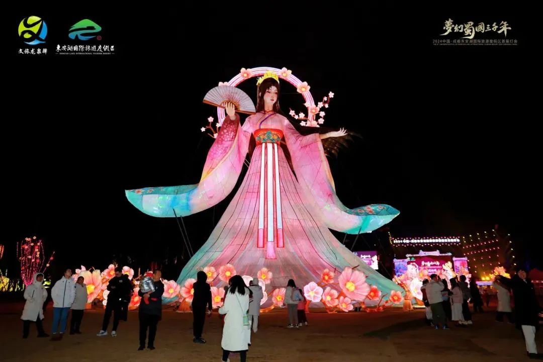 闪耀夺目的创意光彩,奇妙绚丽的花灯世界,2024中国·成都东安湖国际旅游度假区首届灯会吸引不少游客前来沉浸式“体验”。市民刘婷便是其中一位。2月12日,刘婷带着一家四口来到了家门口的“灯会”,在璀璨灯火中沉浸式体验“灯会之趣”。“还挺好看的,娃娃特别喜欢那个桃花仙子,还是很漂亮的。”