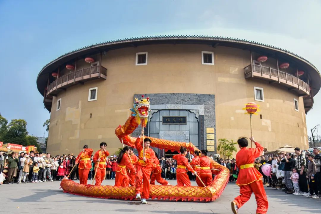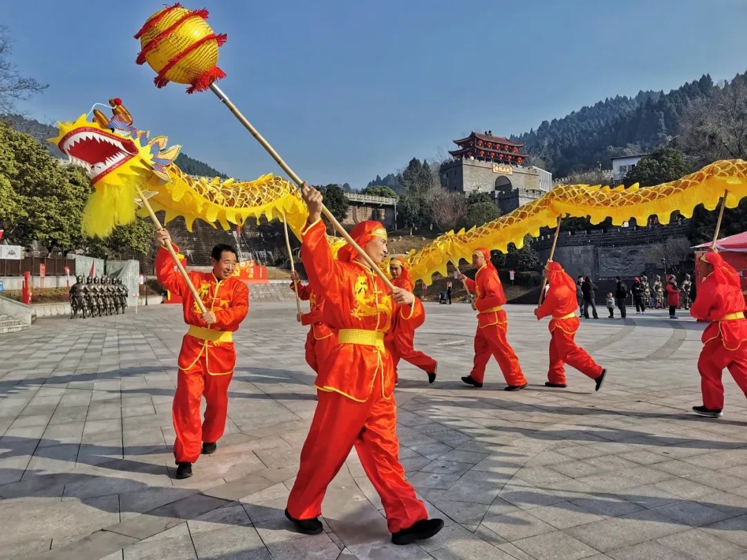 巍峨壮美的金龙长城,客家舞龙队为游客带来了精彩的省级非遗舞龙表演,悠悠的客家山歌唱响客家人对生活的热爱,福禄寿喜财五路吉祥神巡游,将一年的好运带给每位游客。