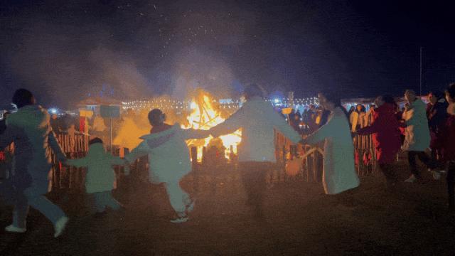 同时还有超炫篝火大集,游客们在火树银花中狂欢。各种惊喜互动活动、童趣游戏、二人转、东北秧歌与川剧变脸吐火等表演,为游客带来了丰富有质量的互动体验。