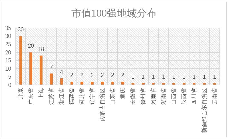 市值百强公司地域分布