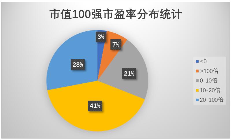 市值百强公司市盈率分布