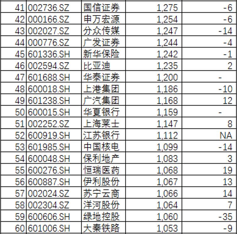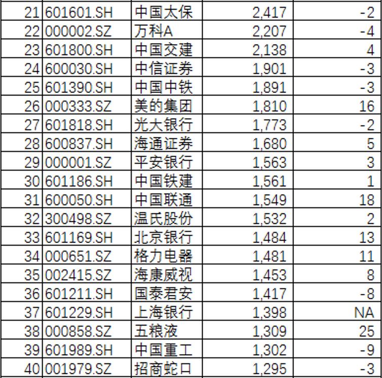 市值前20强上市公司排名变化