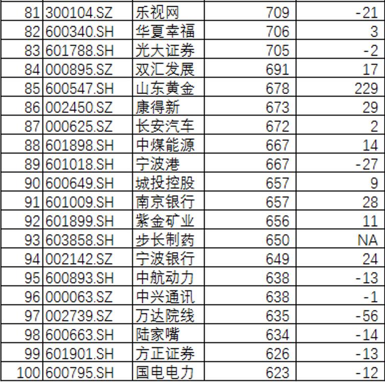 包括石化油服、东方明珠等在内的13家上市公司跌出了市值100强名单。