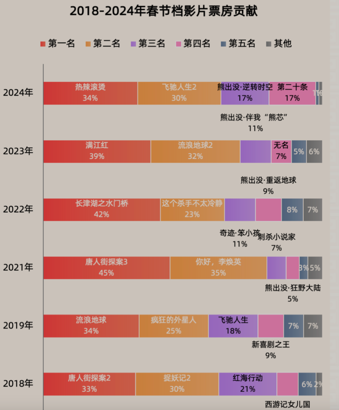 春节档票房前四名票房占比创下近年来新高,后四名选择改档。