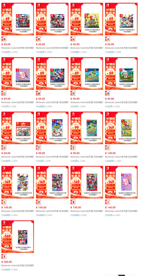 紧接着,NS京东官方旗舰店在1月17日开启了“大甩卖”模式,多款原价299元的游戏直接降至69元,疫情期间遭疯抢的《健身环大冒险》(以下简称“健身环”)从499元直降到199元。
