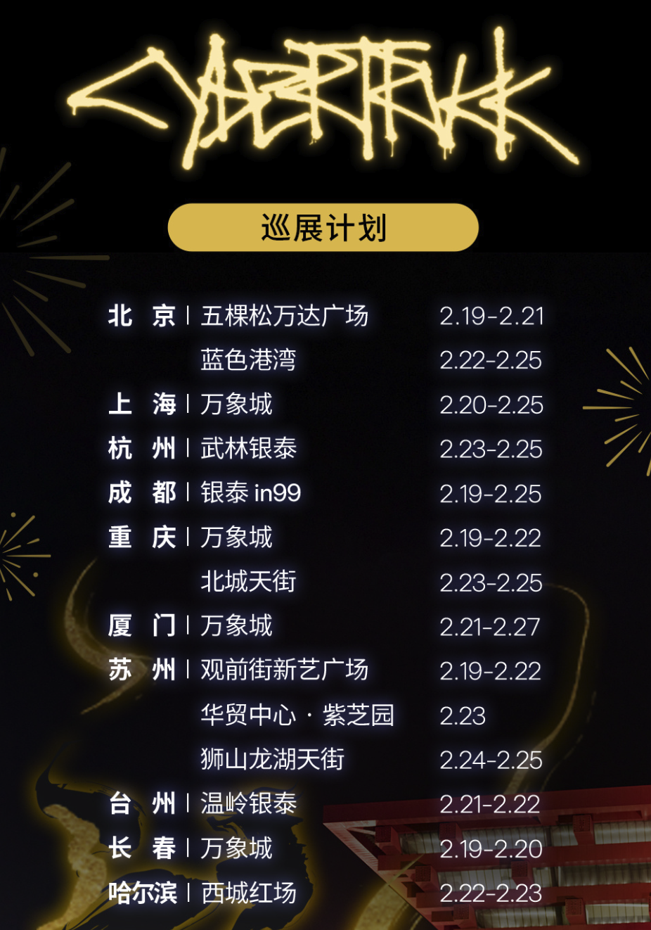 2月19日,特斯拉赛博越野旅行车(Cybertruck)中国巡展计划更新。据特斯拉消息,于1月28日开启的赛博越野旅行车巡展计划,现加入厦门、苏州、哈尔滨等城市。