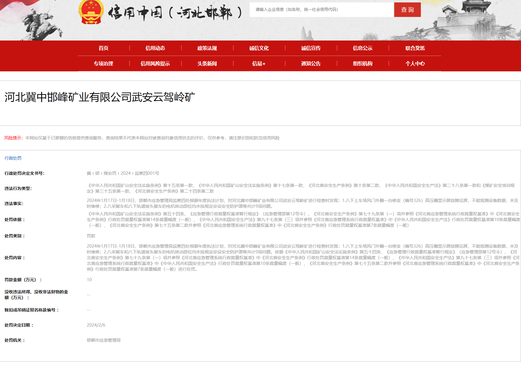 来源:信用中国(河北邯郸)门户网站