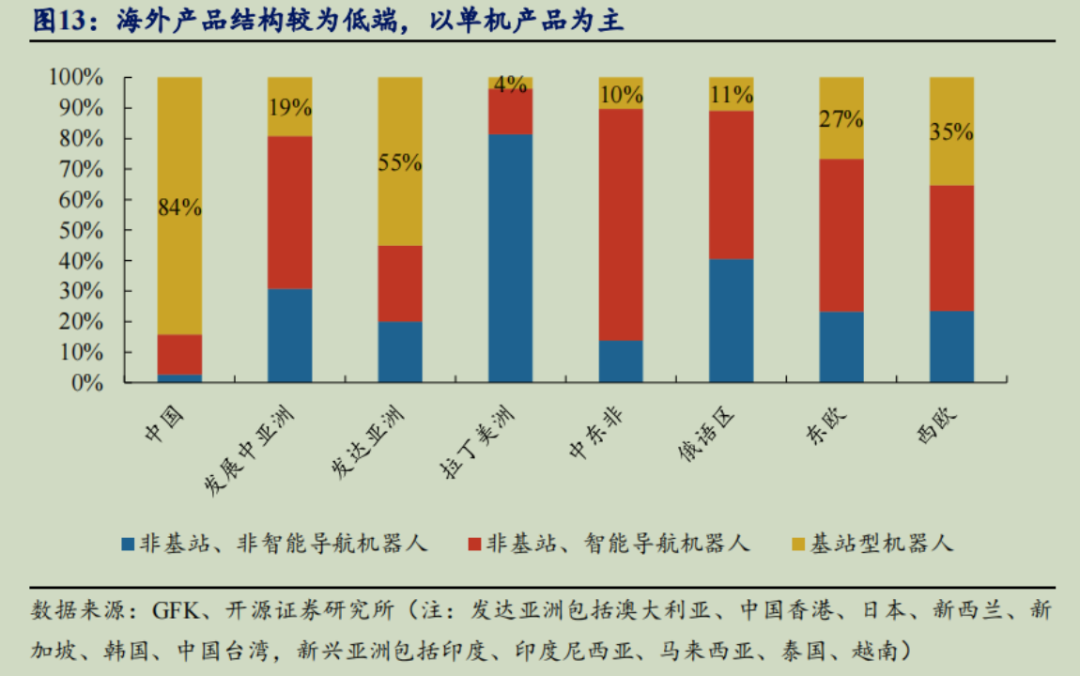 由于国内更加激烈的市场竞争环境,中国品牌商在高端/全基站产品领域具备行业的绝对优势,一旦海外扫地机市场发生上述更大规模的结构性变化,那么中国品牌商将收获这一轮行业变化的绝大部分红利。