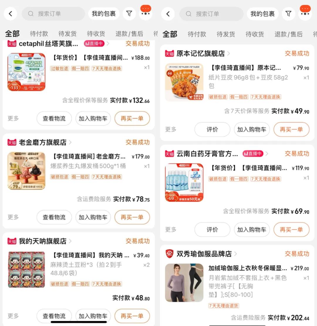 站在旁边的姐姐突然说,“我经常在李佳琦直播间买零食和护肤品”,这倒是不用质疑,姐姐家到处摆满了零食,豆皮、红糖姜茶、牛肉粒……一问都是在李佳琦直播间下的单,就连生日姐姐都会提前看看心仪的礼物在李佳琦直播间能不能蹲到。