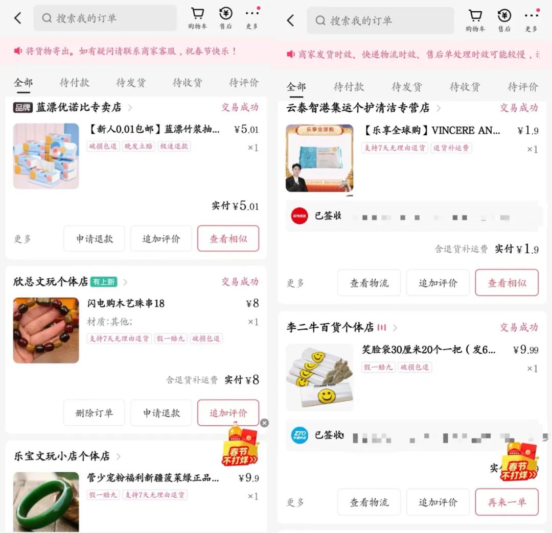 相比之下,我妈倒是冷静了不少,“以前我和隔壁你阿姨老爱买,快手、拼多多上几块钱的东西可多了,隔三差五取快递,但时买了太多低质量的东西,也觉得挺没意思,最近没怎么下过单了,买还是买好一点的。”