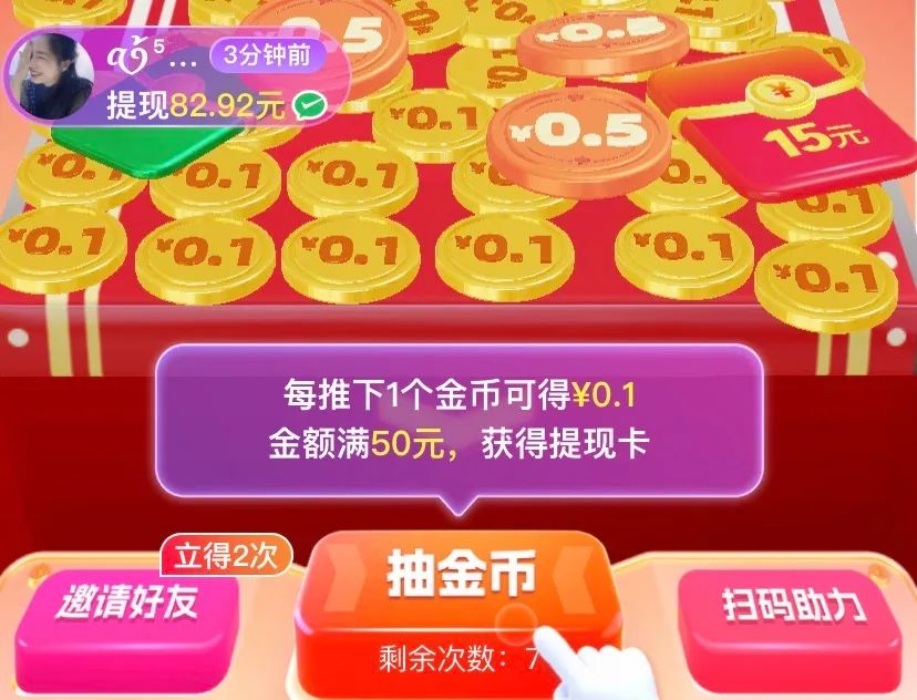 “家人们,快来帮我点一点,还差两个元宝就可以提现了!”