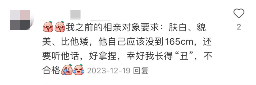 吴怡刚去学校报到的时候,也被领导和同事们积极介绍相亲对象,这些人有些共同点:身高没有超过165cm,且人胖眼小。但凡她对此表现出在意,大家就努力给她做思想工作:人好,单位又好,高矮问题都是其次,过了这村就没这店了。