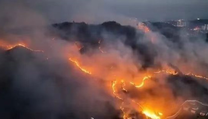 此外,贵阳市南明区八公里处发生山火。据网民发布的视频显示,2月18日晚,贵阳八公里处上方山头失火,当晚天空呈大片红色,浓烟缭绕。