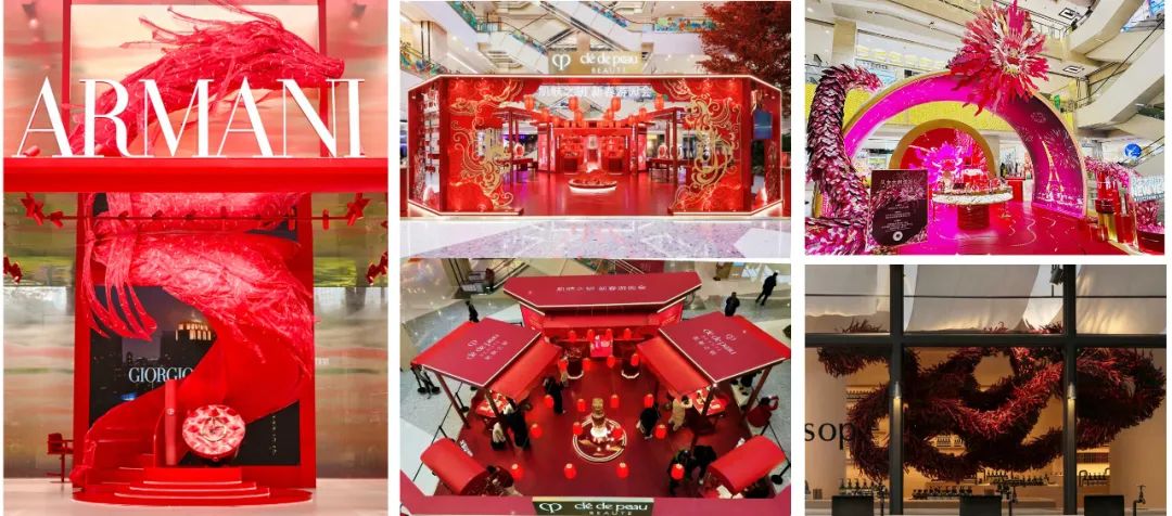 要说今年美妆品牌的线下表达和前几年有何明显不同,就离不开各大品牌的龙年快闪活动的较量。特别是在上海的商场,品牌们早早就支起了各种龙型装饰物,造型庞大且独特,极具排场;同时,各个品牌的龙年快闪活动也在各个城市如火如荼地进行。