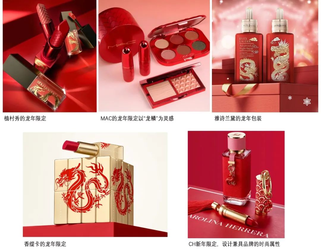 这样做对于销售的促进作用是明显的,且大部限定系列也产生了积极的溢价作用。到了今年,“生肖限定”仍然热度不减,仍然是美妆品牌最常使用的营销手段——通过龙年套装的组合销售、龙年颜色妆容的开发,达到一个宣传和促销的目的。