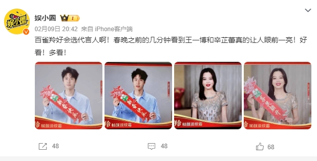 比如老牌国货品牌「百雀羚」,在电视剧《繁花》营销霸屏后,又在春晚前19:40-20:00的黄金时段播出两位代言人的祝福视频,可以说达到了传播势能的最大化。