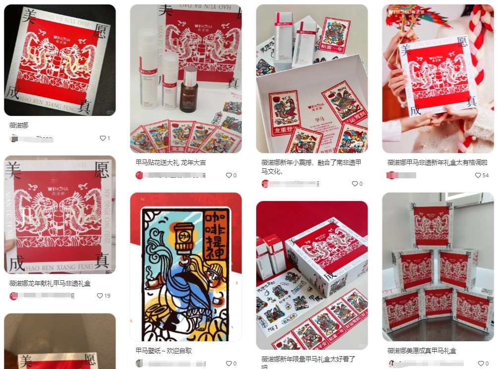 服装品牌lululemon以咏春拳为主题的新春广告,就被网友评为“绝口不提年,处处都是年味”的范本。而美妆品牌中,「薇诺娜」就溯源了云南的一种非遗文化「甲马」,并将其融入到新年礼盒的设计当中,打出“遇见非遗,愈见多一种美”的口号。