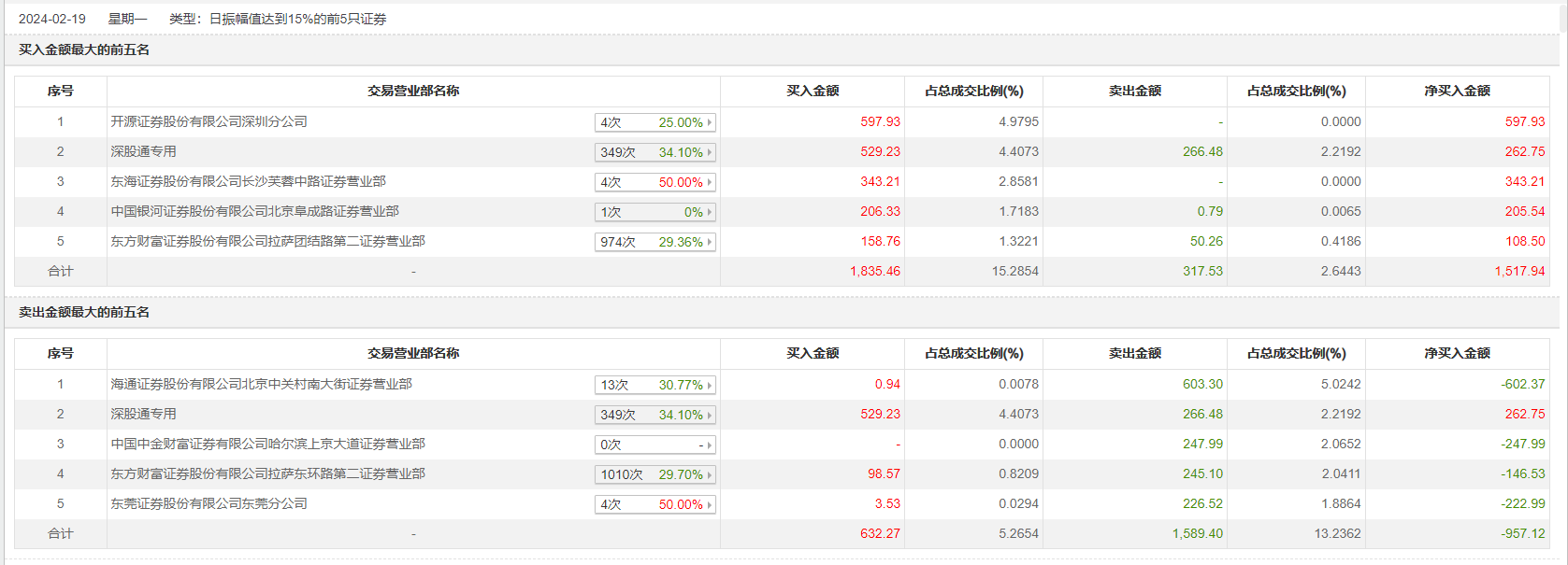 2月19日,人人乐今日涨9.38%,龙虎榜数据显示,上榜营业部席位全天成交3578.95万元,占当日总成交金额比例为29.8%。其中,买入金额为1938.51万元,卖出金额为1640.44万元,合计净买入298.06万元。