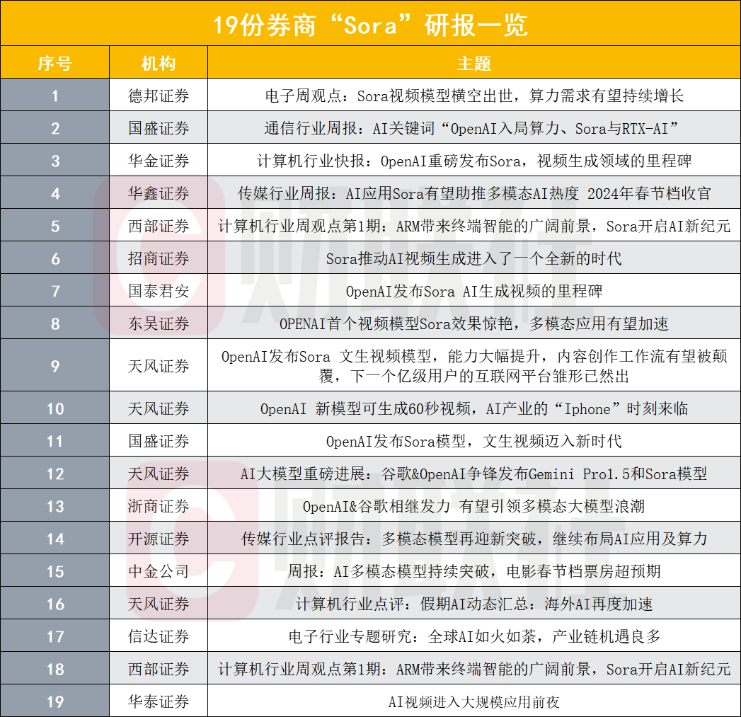 近日,有超过14家券商,发布了19份Sora研报,表达对AI视频的看法。