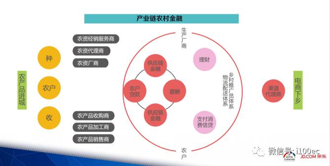 在金融方面,京东金融在1500多个县30多万个行政村,开展农村金融业务,构建了一个以农民个体、涉农企业、农产品消费者及众多合作伙伴为核心的农村金融生态圈,通过京农贷、农村众筹、乡村白条、农村理财等产品线为农村提供全多元化金融服务;在推进农产品进城的过程中,京东金融与中华联合财产保险公司、新希望六和、杜邦先锋、通威等在内的40多家企业达成了深度合作,为农民提供从原料采购、种植、收购和销售的全过程金融支持和服务。“京农贷”项目更是成为了帮助贫困地区建档立卡的家庭脱贫致富的好帮手。今年4月,“京农贷”扶贫项目在河南省级贫困县扶沟、临颍等地成功落地,帮助贫困家庭降低种植成本、提高收入,增收节支累计提升贫困家庭收入30%。目前正在江苏、黑龙江、内蒙古等地进行推广。