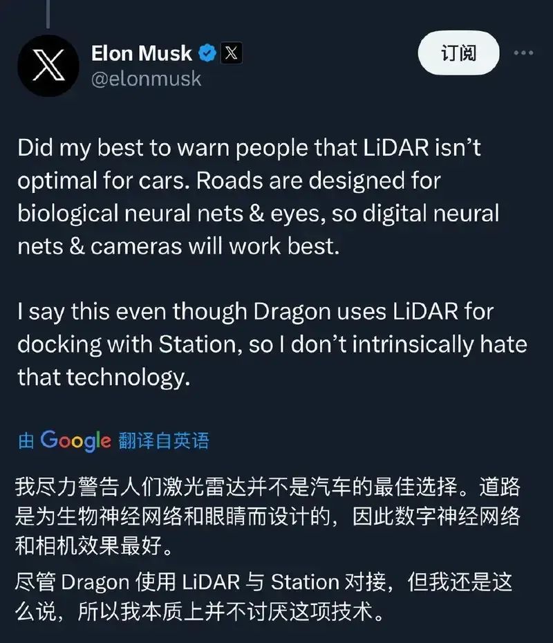 关于特斯拉选择纯视觉方案是否有科学依据?特斯拉方面表示,特斯拉的工程师发现,激光雷达等额外的传感器不仅不会增加信息的准确性,还有可能影响最后的分析速率和结果。随着搭载激光雷达的车越来越多,彼此之间还会互相干扰,影响探测精度。举个例子,小时候的玩“蒙眼游戏”,逻辑就是切断视觉信息,但鼻子、耳朵等其他感官无法快速提供准确的信息,反而还有可能造成大脑处理的混乱。