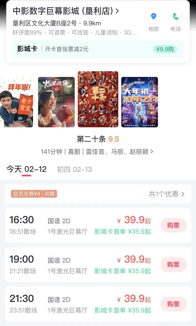 “今年吃了预售的红利,平台补助19.9票价吸引了不少观众入场,“梁经理表示,他是最早开预售的,售卖情况不错,春节的时候他还往下降了些票价,“我们吸取了往年的教训,选择了一个亲民的价格。不能再涨价了,否则市场还会再给一巴掌的。”