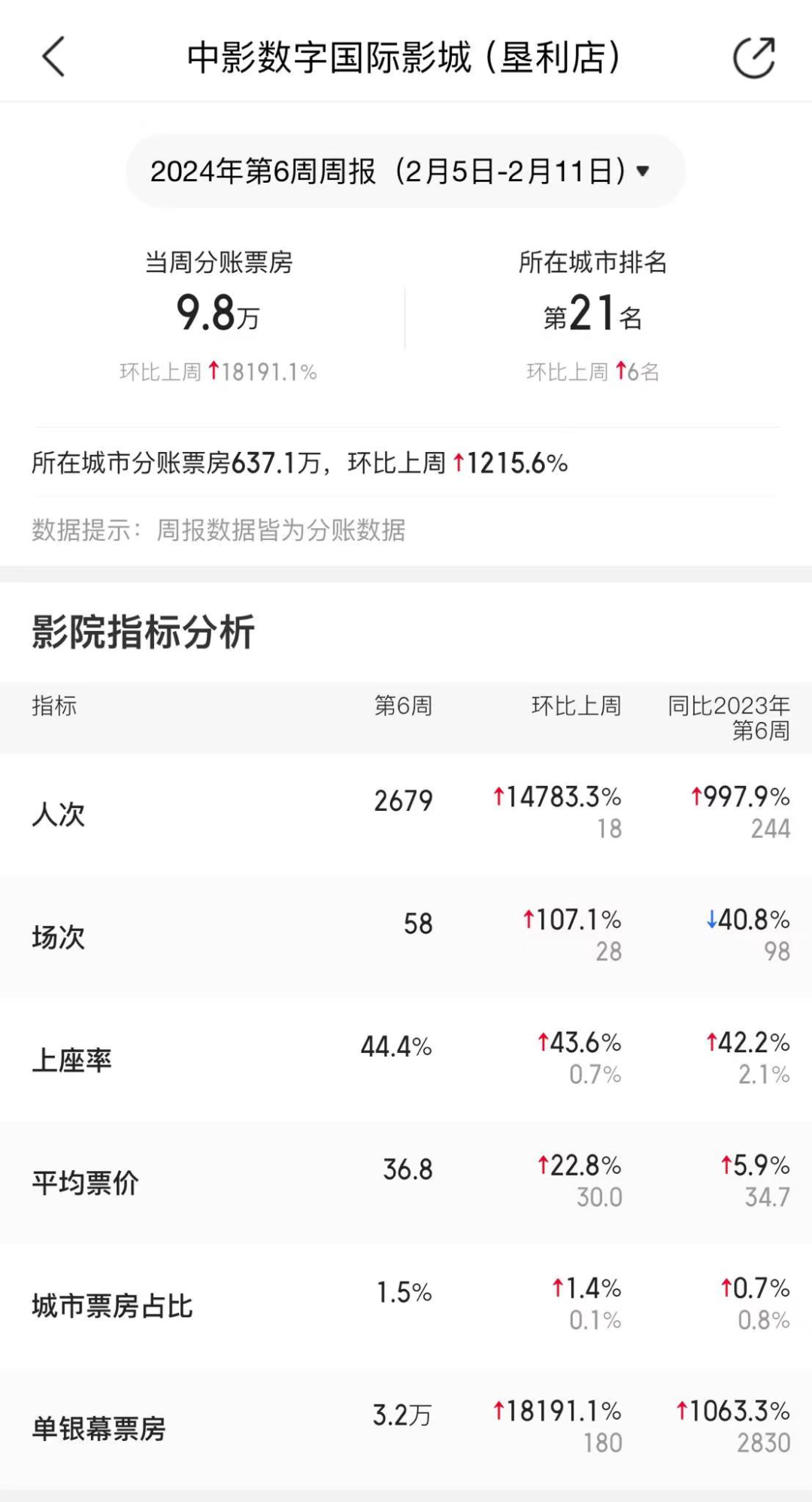低价策略让影院情况稍稍得以好转,春节档期间,上座率大幅上升,涨至44.4%,城市票房占比也达到了1.5%。