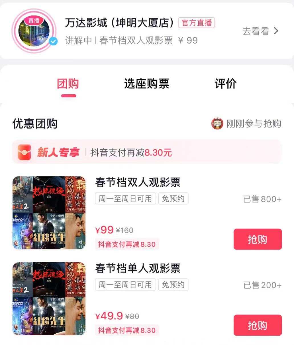 元旦开业之后,影院依旧没有放下短视频渠道,每天都会安排直播,让店员轮流当主播介绍影院的活动,以及当前影讯,“即使不卖票,也要保持曝光性。”武店长表示这是老板非常坚持的一个运营策略。