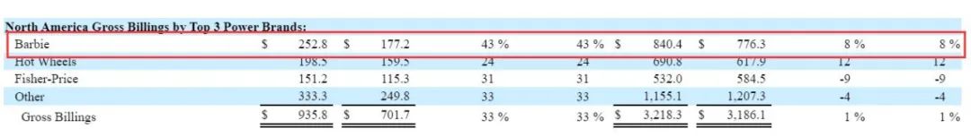 “芭比”的突出贡献在美泰的三大旗舰品牌业绩中也有体现。