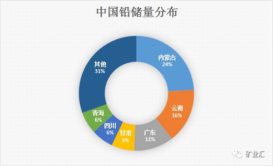 据国土资源部发布的《2015年中国国土资源公报》显示,截至2015年我国铅矿查明资源储量为7812.4金属万吨,铅储量1400万吨,主要分布在内蒙古、云南、广东等省(自治区),其中内蒙古占全国铅基础储量的24.04%,云南占全国铅基础储量的15.43%,广东占全国铅基础储量的11.20%。