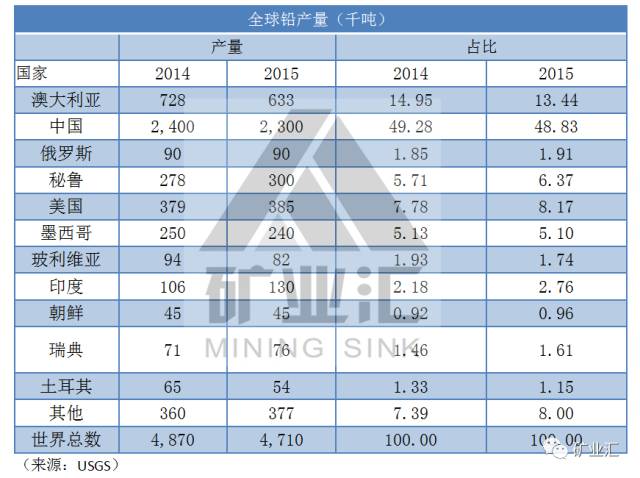 中国是全球最大的铅生产国,据USGS统计,中国铅产量已经占到全球的48.83%(国内统计为442万吨,占比43%),五大铅生产国--中国、澳大利亚、美国、秘鲁和墨西哥产量约占到全球总产量的80%。