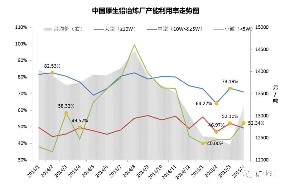 相较于大中型原生铅冶炼厂,小微原生铅冶炼厂产能利用率则随价格起伏波动较大,其产能利用率运行在40.00-52.34%。除小微炼厂外,大中炼厂开工均不及去年同期。