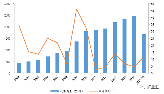 近年来我国汽车增速已由2000年至2010年间的约24%,下降到2010年至2014年的7%左右,未来增速有可能维持低位,铅蓄电池消费终端需求缓慢增长势必对中国铅行业造成影响。