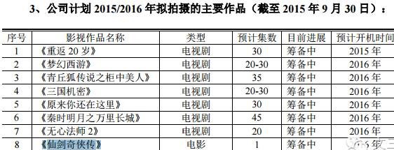 不过,2016年,在唐人影视挂牌新三板时披露的《公转书》中显示,《仙剑奇侠传》电影版预计在2016年开拍。