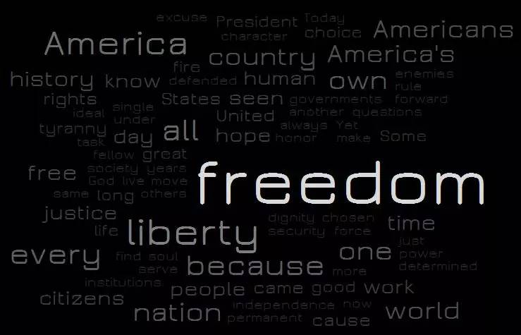 任期内经历9/11恐袭后,在国内保证人民的自由成为了本次演讲的重点,在演讲中也曾提及:“美国需要理想和勇气,因为我们最根本的任务,即人类自由任务。”