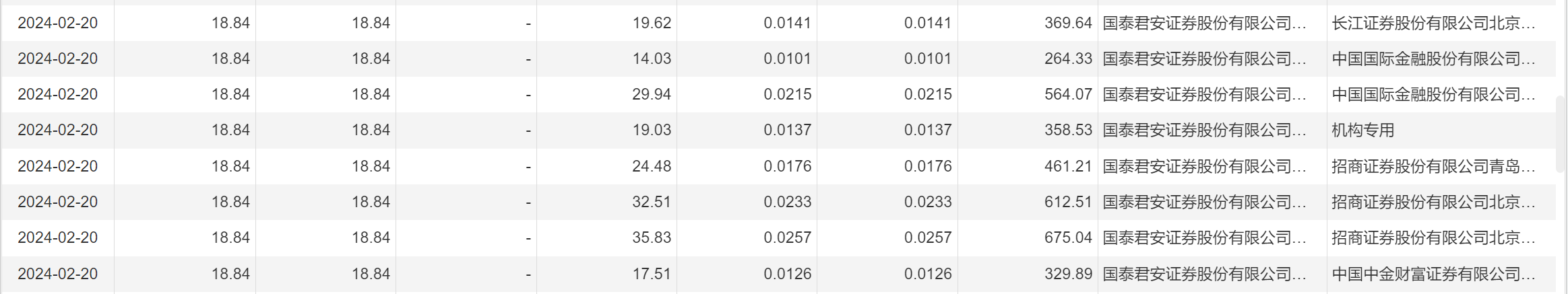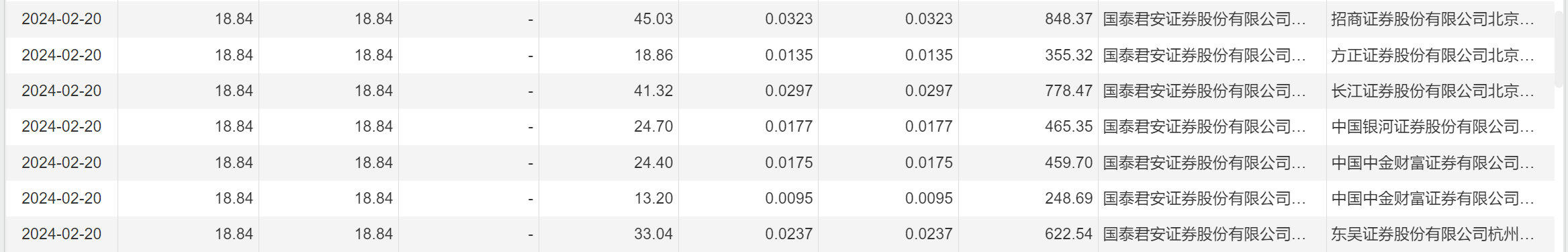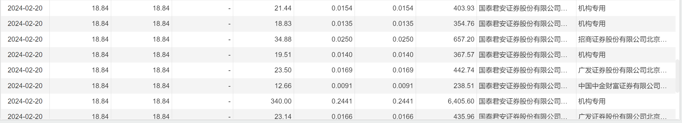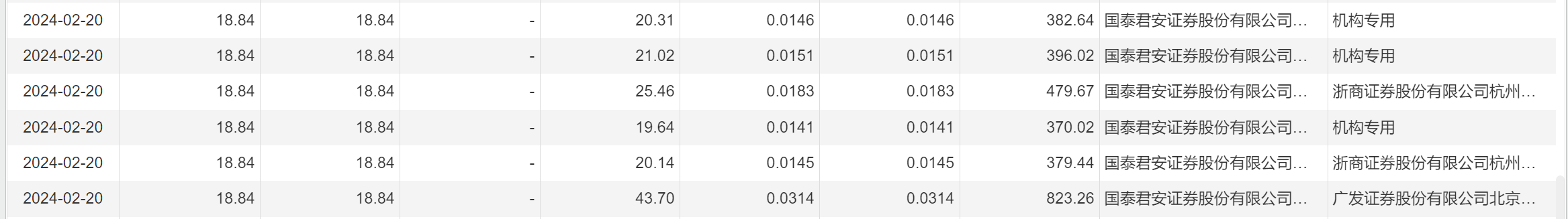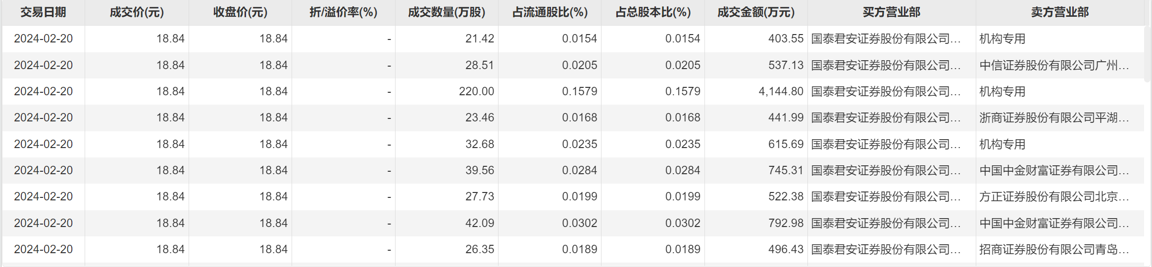 中航高科2月20日大宗交易成交1499.53万股,成交额2.83亿元,占当日总成交额的65.63%,成交价18.84元,较市场收盘价18.84元持平。